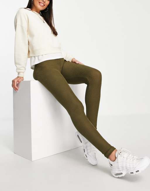 Vero Moda – Gerippte Leggings in Khaki