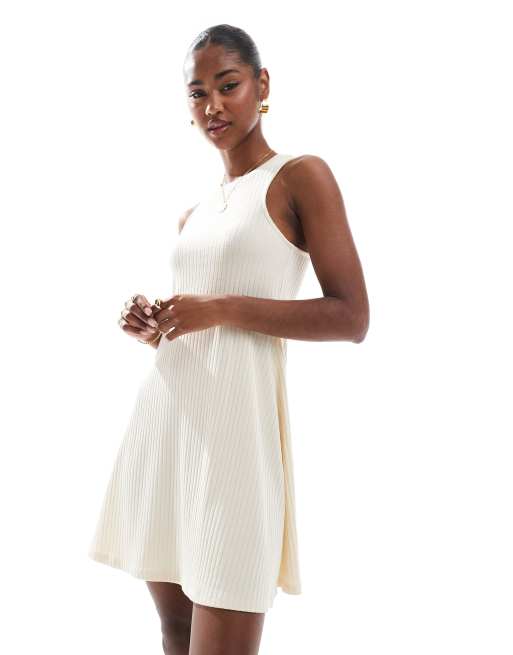Vero Moda – Geripptes Minikleid in Cremeweiß mit Ringerrücken