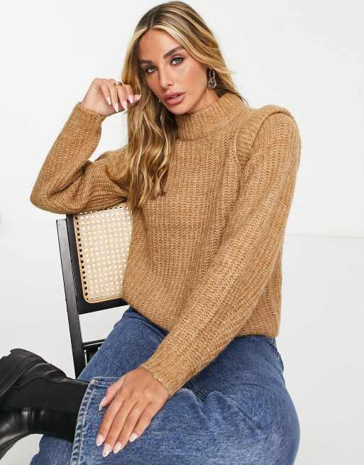 Vero Moda – Hochgeschlossener Pullover mit strukturierten Schultern in Camel