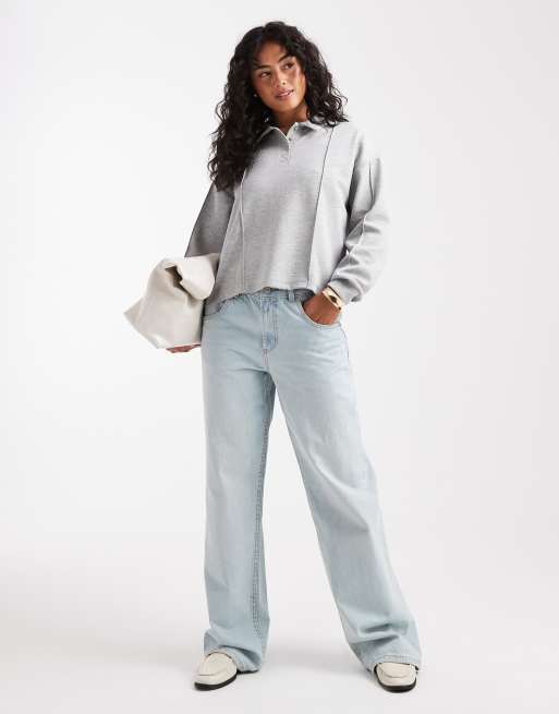 Vero Moda – Jersey-Set in meliertem Hellgrau, aus Polo-Oberteil und Hose mit weitem Bein