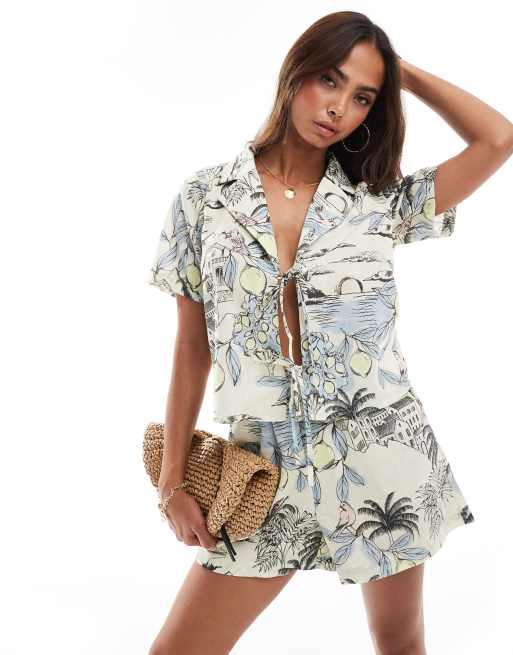 Vero Moda – Kastige Hemdbluse mit Palmenmuster, Kombiteil