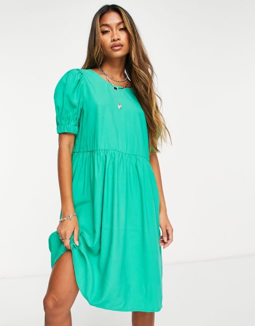 Vero Moda – Kurzärmliges Freizeitkleid in Minilänge in Grün mit Rundhalsausschnitt