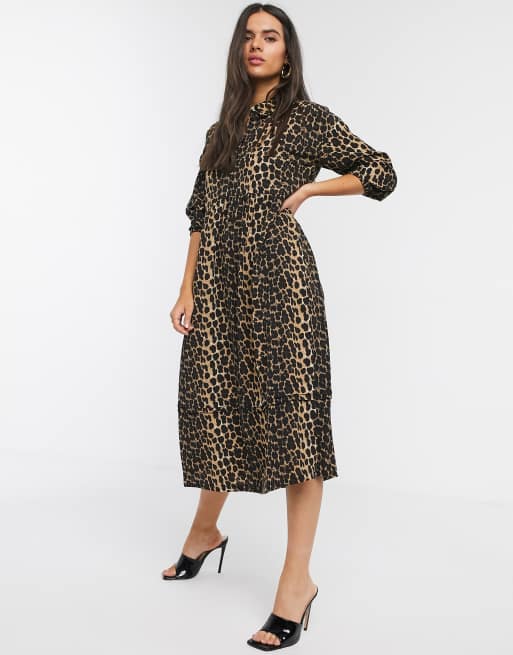 Vero Moda – Midi-Hemdkleid mit Puffärmeln und Leopardenfellmuster
