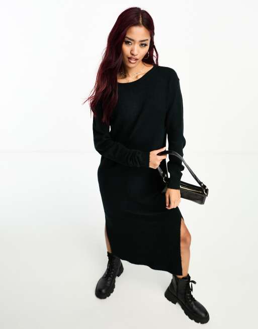 Vero Moda – Midi-Pulloverkleid aus Strick in Schwarz