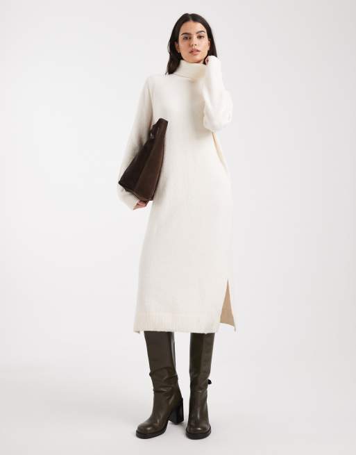 Vero Moda – Midi-Strickkleid in meliertem Cremeweiß mit Rollkragen