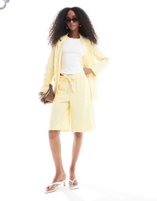 Vero Moda – Mix and Match – Schmal geschnittene Longline-Shorts in blassem Bananengelb, Kombiteil