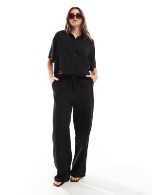 Vero Moda – Mix & Match – Hose aus Leinenmix in Schwarz mit weitem Bein und Taillenschnürung
