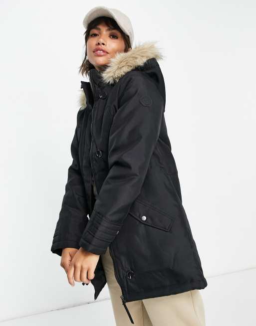 Vero Moda – Parka in Schwarz mit Kunstpelzbesatz an der Kapuze
