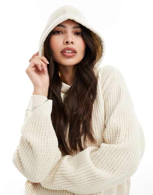 Vero Moda – Pullover in Cremeweiß mit dicker Rippenstruktur und Kapuze