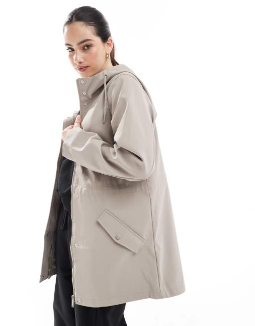 Vero Moda – Regenjacke in Mondstein-Grau mit Kapuze