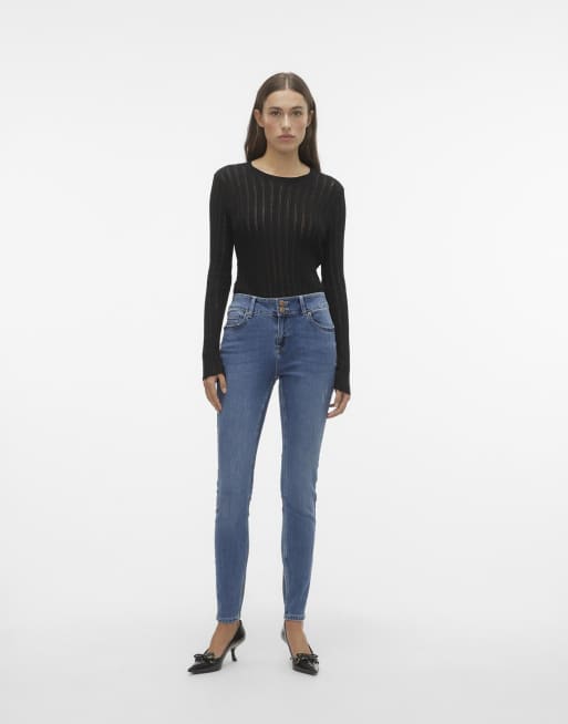 Vero Moda – Schmal geschnittene Jeans aus mittelblauem Denim
