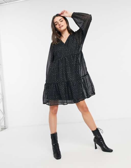Vero Moda – Schwarz gepunktetes Mini-Hängerkleid mit Puffärmeln