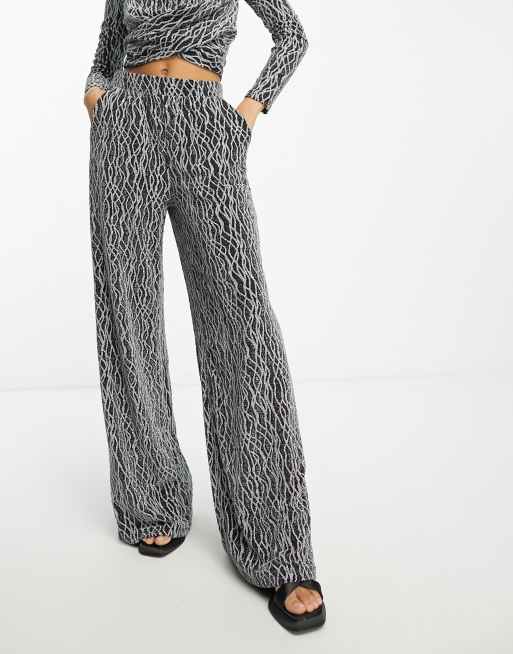 Vero Moda – Silber glitzernde Hose mit weitem Schnitt, Kombiteil