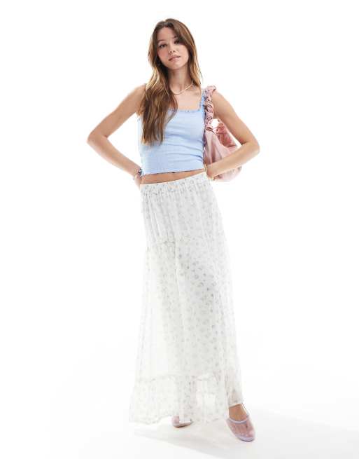 Vero Moda – Smilla – Gestufter Midirock mit Blümchenmuster in Blau