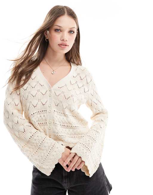 Vero Moda – Strickjacke in Creme mit durchbrochenem Muster