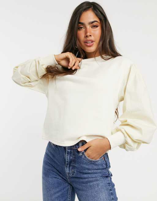 Vero Moda – Sweatshirt mit voluminösen Ärmeln in Cremeweiß