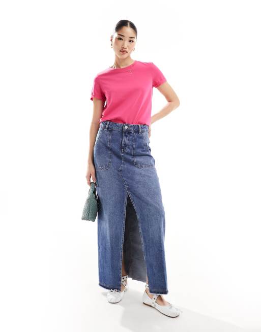 Vero Moda – T-Shirt in leuchtendem Rosa mit umgeschlagenen Ärmeln
