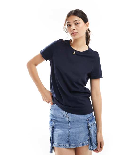 Vero Moda – T-Shirt in Marineblau mit umgeschlagenen Ärmeln