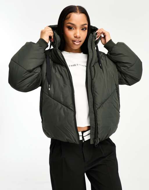 Vero Moda – Wattierte Jacke in Khaki mit farblich abgesetztem Besatz