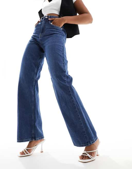 Vero Moda – Weit geschnittene Denim-Jeans in Dunkelblau mit Rosenmuster