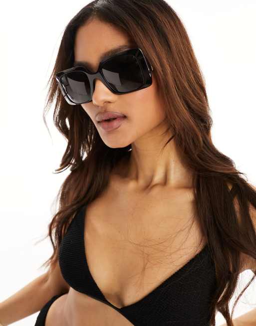 Versace – Eckige Sonnenbrille in Schwarz mit breitem Gestell