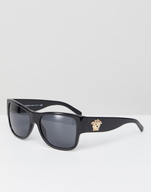 Versace – Eckige Sonnenbrille mit seitlicher Verzierung