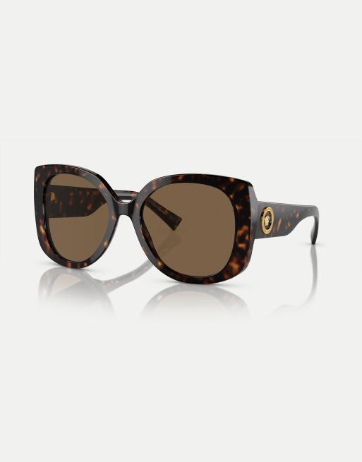 Versace – Rechteckige Sonnenbrille mit Gläsern in Braun und Schildpattoptik in Dunkelbraun
