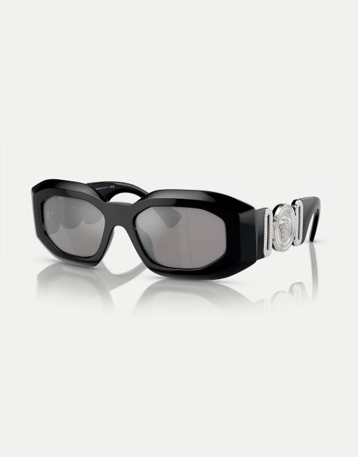 Versace – Ve4425 – Unregelmäßige Sonnenbrille in Schwarz mit verspiegelten Gläsern in Silber