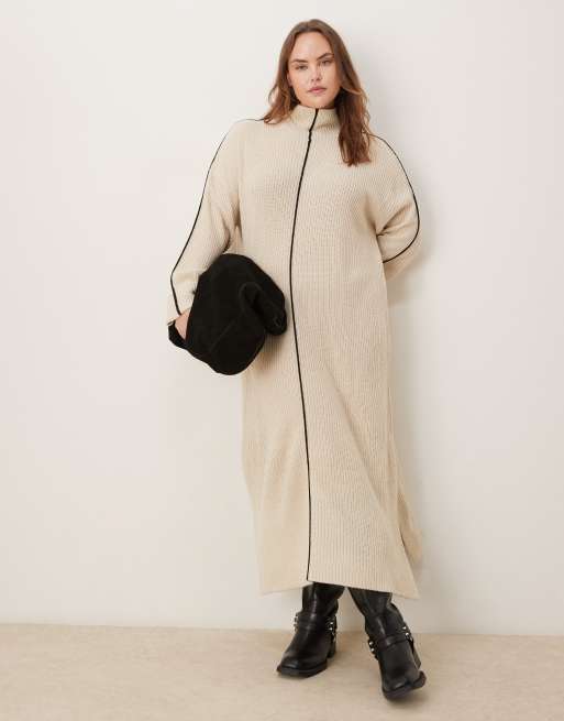 VILA Curve – Hochgeschlossenes Maxi-Strickkleid in Creme