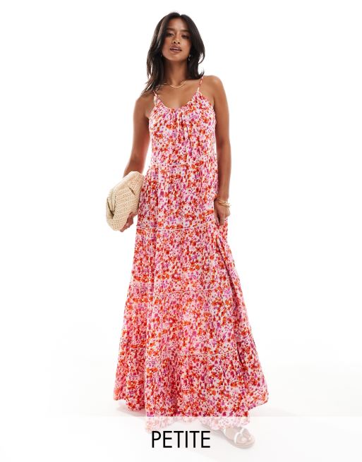 Vila Petite – Gestuftes Maxi-Trägerkleid mit rosa Blumenmuster