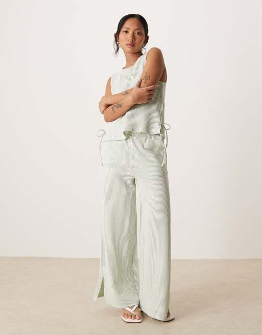 Vila Petite – Strukturierte Hose mit weitem Bein und Streifen in Grün und Creme, Kombiteil