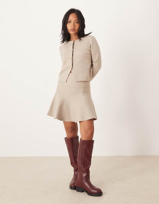 VILA Petite – Strukturiertes Strickset in blassem Beige mit Strickjacke und Minirock