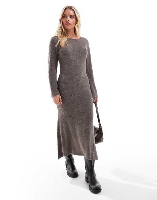 Vila Petite – Superweiches, flauschiges Maxi-Pulloverkleid in Braun