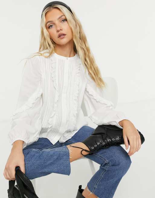 Vila – Bluse mit Stickerei und Hemdkragen in Weiß