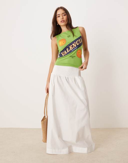 Vila – Boho-Rock aus Popeline in Creme mit gesmoktem Bund