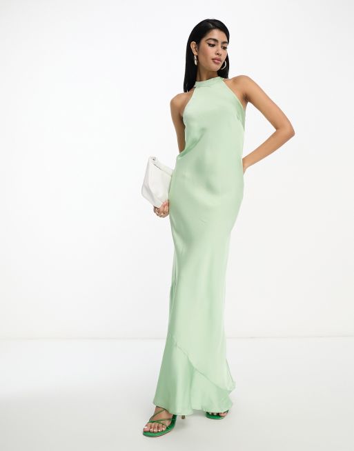 Vila – Bridesmaid – Maxi-Brautjungfernkleid in Mintgrün mit Neckholder-Träger