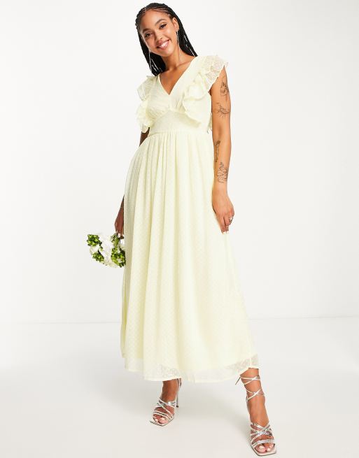Vila – Bridesmaid – Midikleid aus strukturiertem Dobby-Stoff in Gelb mit Rüschenverzierung - YELLOW