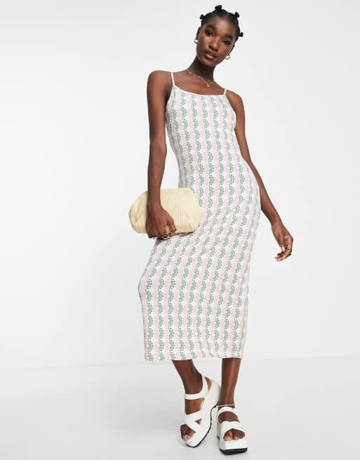 Vila – Camisole-Midikleid mit Retro-Blumenmuster
