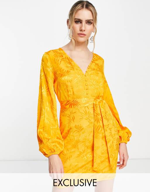 Vila – Exklusiv – Minikleid aus Satin-Jacquard in leuchtendem Orange mit Knopfleiste