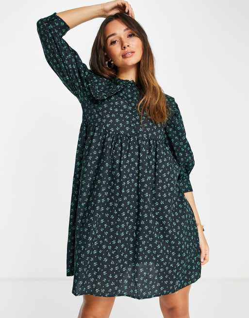 Vila – Geblümtes Minikleid in Marineblau mit Kragendetail