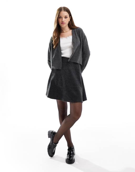 Vila – Gestricktes Set in Dunkelgrau aus Minirock und Strickjacke
