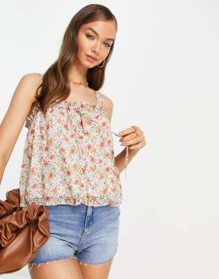 Vila – Kurz geschnittenes Camisole mit Blümchenmuster
