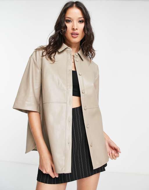 Vila – Kurzarmhemd in Zementbraun
