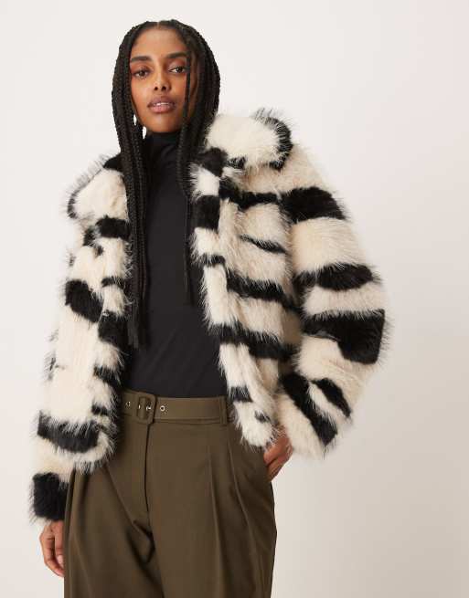 VILA – Kurze Kunstpelzjacke mit Zebramuster in Schwarz und Weiß