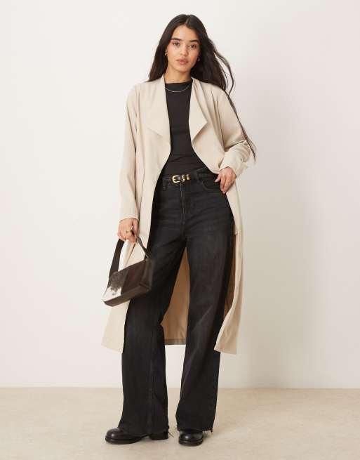 VILA – Mantel in Steinbeige mit Wasserfalldesign und Bindegürtel