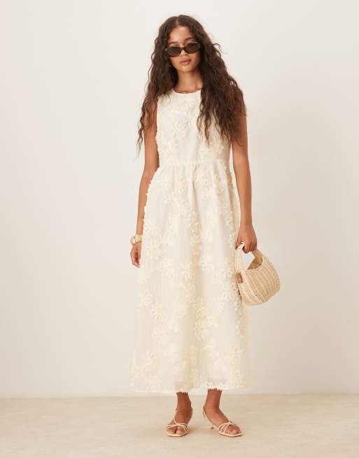 VILA – Midikleid in Creme mit Blumenapplikationen