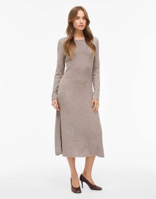 VILA – Midikleid in Kaffeebohnenbraun