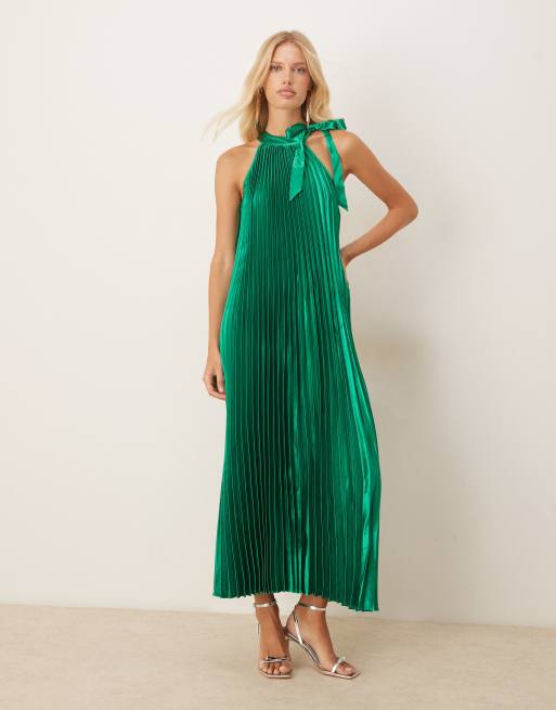 VILA – Neckholder-Midikleid in Smaragdgrün mit Längsfalten