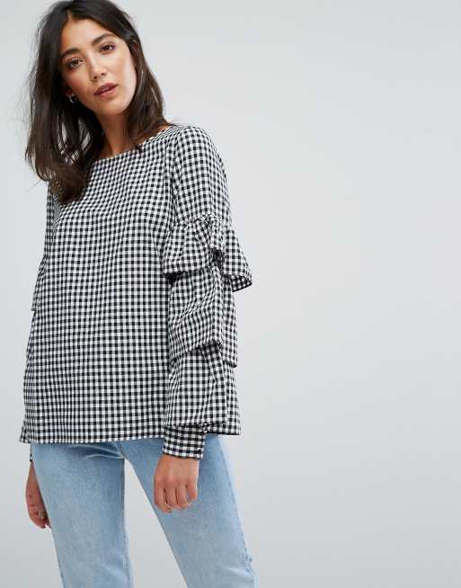 Vila – Oberteil mit Vichy-Karos und Rüschenärmeln