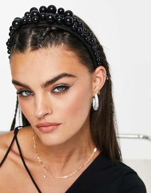 Vila – Party – Haarreif in Schwarz mit großen Perlen